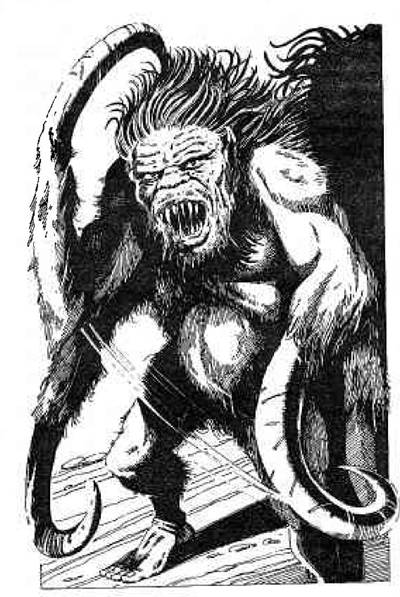 В тебе бурлит дикая ярость. Ты делаешь шаг назад и с разбегу бросаешься на дверь. Петли с треском вырываются из косяка, и, поднимая тучи пыли, дверь с оглушительным грохотом падает внутрь. Перед твоими глазами предстает пещера с голыми стенами. В пещере нет ни столов, ни стульев – лишь сиденье, вырубленное в камне. Похоже, в этом помещении содержат раба или пленника. Но тут твой взгляд падает на обитателя пещеры, и ты понимаешь, что промедление подобно смерти. Ибо потревоженный тобою огромный САБЛЕРУКИЙ МОНСТР уже занес над тобой свою ужасную лапу, намереваясь нанести смертельный удар. В последний момент ты успеваешь отпрыгнуть в сторону. Нападение не испугало тебя, а лишь еще больше разъярило. Ты выпускаешь когти и решительно направляешься к Монстру. Тебе предстоит схватка не на жизнь, а на смерть: