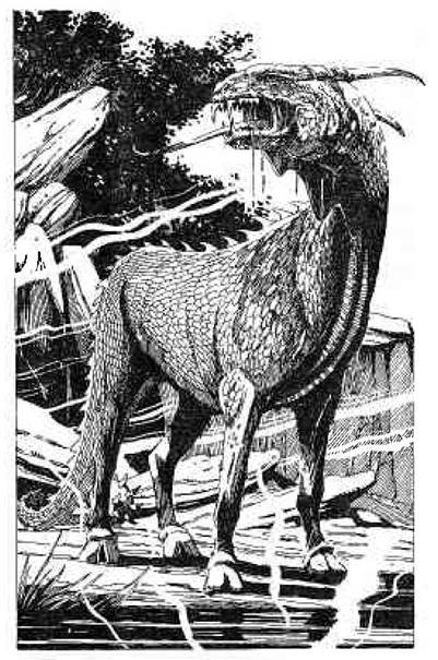 Ты идешь по берегу вниз по течению реки. Идти нелегко – почва под ногами неровная и каменистая; там, где течение реки разбивается о высокие пороги или бросается вниз водопадом, тебе приходится спускаться по скалистым склонам. Наконец ты приходишь к месту, где бурные воды реки успокаиваются и разливаются обширным водоемом. От водной глади медленно поднимается едкий пар, и в нос тебе ударяет неприятный запах, да так сильно, что от неожиданности ты замираешь на месте. В тумане тебе удается разглядеть четвероногое существо, которое стоит поодаль и шумно лакает зловонную воду. Пригибаясь за кустами, ты подкрадываешься ближе и видишь, что у зверя длинные