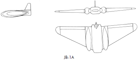 В конце 1943 г. американская фирма «Нортроп» получила контракт на разработку крылатой ракеты JB-1 (проект МХ-543), аналогичной немецкой ракете Фау-1. В качестве силовой установки предполагалось использовать два ТРД «Дженерал электрик» B1 тягой по 181 кгс. В корневых частях крыла располагались два контейнера, в каждом из которых располагалась 900-кг бомба. Для проверки аэродинамики ракеты одну из JB-1 выполнили в виде пилотируемого планера. Центроплан аппарата был изготовлен из магниевого сплава, крыло – из алюминиевого сплава с магниевыми законцовками. Кабина летчика располагалась в том месте, которое предназначалось для установки реактивных двигателей в основном беспилотном варианте JB-1.