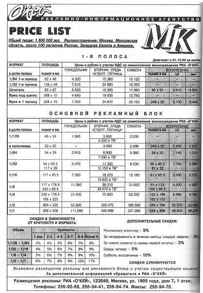 Илл. 6. Система цен газеты «Московский комсомолец»