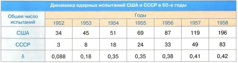 Следует отметить, что после периода начального роста количество ядерных испытаний СССР, вплоть до их возобновления в 1961 г., было в 2,5-3 раза меньше количества ядерных испытаний США на каждый текущий момент времени. Это означало серьезное научно-техническое отставание.