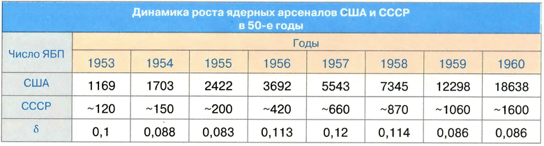 В 50-х годах стратегическая авиация США имела 1850 бомбардировщиков Б-52 и В-47, предназначавшихся для доставки ядерных и термоядерных боеприпасов. Они базировались на 65 авиабазах, в том числе на 25 аэродромах других стран.
