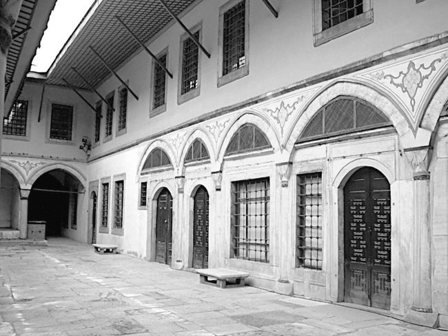 Окна и двери комнат наложниц и жен султана выходят во дворик, в котором они гуляли
