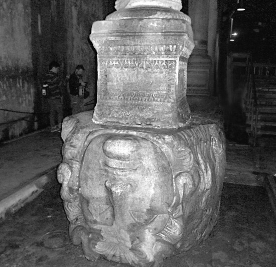 Колонна, в основании которой голова Медузы Горгоны. Цистерна Базилика. Фото автора
