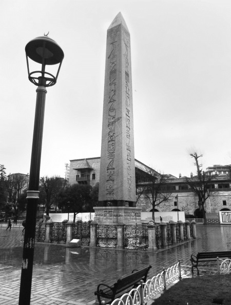 Первый и самый древний памятник на Ипподроме – Египетский обелиск (Dikilitas), привезенный из Луксора по приказу Константина Великого. Обелиск – самый древний предмет в Стамбуле. Обелиск установлен на мраморном постаменте, рельефы которого (около 390 года) изображают разные сцены, в том числе и операцию по установке самого обелиска.