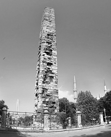 Третий монумент на площади – так называемый Колосс (Orme Sutun), тоже обелиск, но византийский. Он сложен из четко пригнанных каменных блоков и имеет высоту около 21 метра. Был построен по приказу императора Константина VII в честь памяти своего деда Василия I и облицован позолоченными бронзовыми листами, но драгоценные пластины содрали и переплавили крестоносцы, когда грабили город в 1204 году. Во времена расцвета Османской империи, когда на Ипподроме проводились грандиозные представления, Роксолана, Сулейман и их родные, а также слуги и служанки, евнухи и наложницы, визири и послы, горожане и заморские гости с увлечением наблюдали за тем, как акробаты ходят по канату, натянутому
