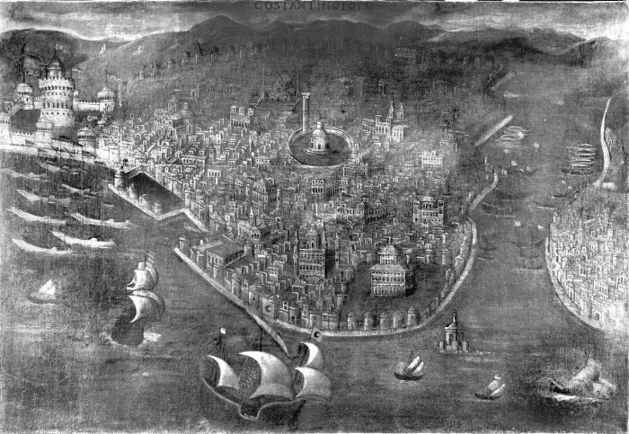 В преддверии штурма Константинополь выглядел следующим образом. Город был обнесен тремя рядами стен со рвами между ними, которые были заполнены водой; на стенах находились сторожевые башни; имелись широкие проходы для передвижения войск. Городские стены за время своего существования уже выдержали двадцать осад, но теперь их прочность вызывала сомнения.