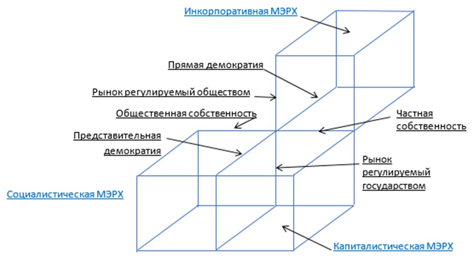 Название институциональной матрицы хозяйствования определяет «название типа общества»: социалистическое общество, капиталистическое общество, инкорпоративное (некапиталистическое) общество, коммунистическое (несоциалистическое) общество и другие.