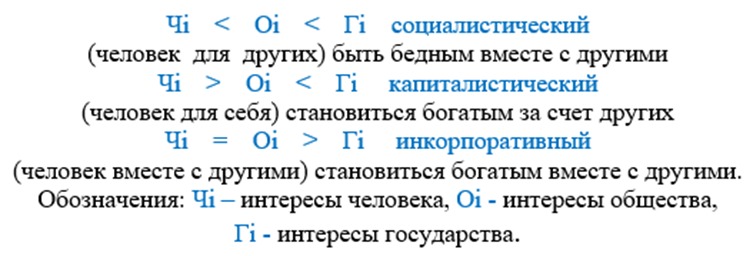 Инкорпоратизм – способ удовлетворения индивидуальных интересов, дающий возможность становиться и быть богатым вместе с другими, посредством развития инкорпоративной собственности.