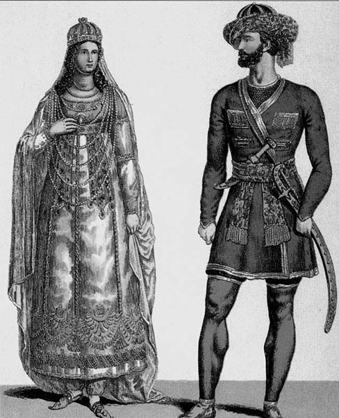 Великий князь Николай Павлович в костюме Алариса и великая княжна Александра Федоровна в костюме Лалы Рук в придворном спектакле.