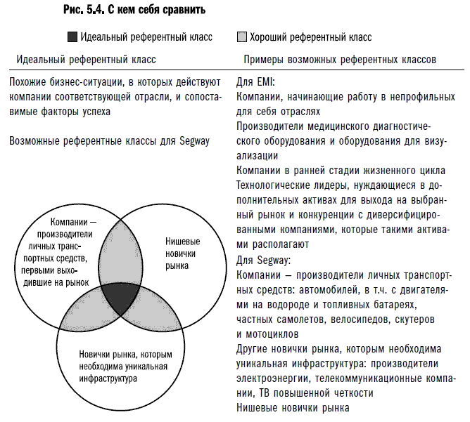 Формируя референтный класс, нужно постараться включить в него примеры максимально близких вам компаний (см. рис. 5.4). Информацию по неудачным попыткам выхода на рынок найти еще важнее, чем