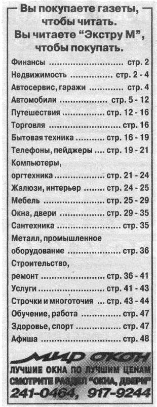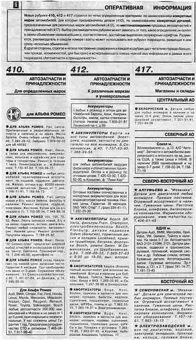 Внутри рубрик строчной рекламы может быть несколько типов подрубрик. Часто они носят общий характер: