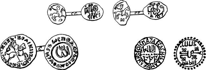 Рис. 8 (слева). Русская монета с русской и арабской надписями