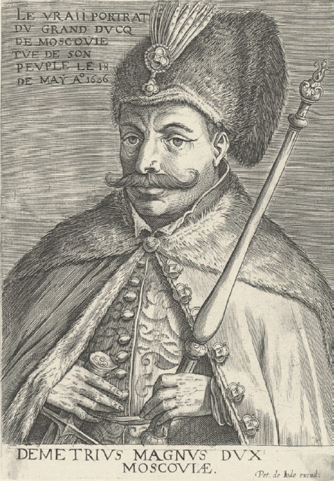 Питер де Иоде. Лжедмитрий. Подпись под портретом «Дмитрий Великий Князь Московский». Надпись на портрете «Действительный портрет Великого Князя Московии, убитого своими же подданными 18 мая 1606 года». Амстердам. 1606 г.