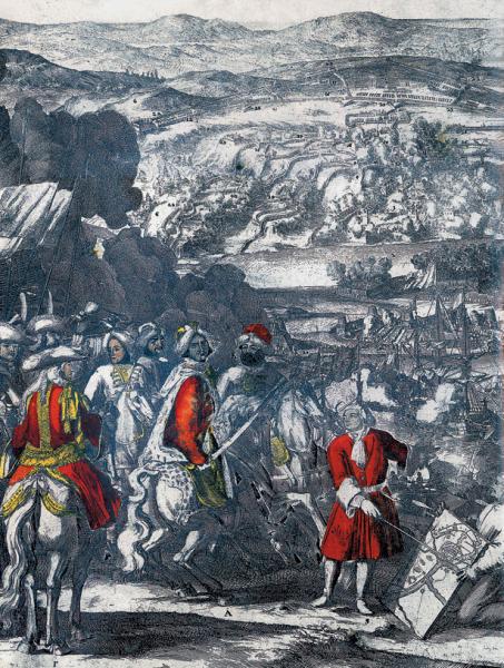 Взятие Азова. В центре, на конях, царь Петр I и воевода А. Шеин. Гравюра А. Шхонебека