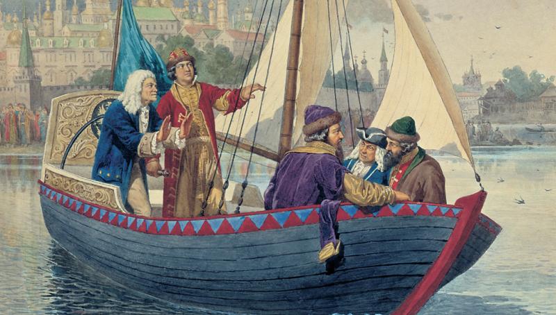 Царь Петр I Алексеевич в ботике на Яузе-реке. Художник А. Д. Кившенко