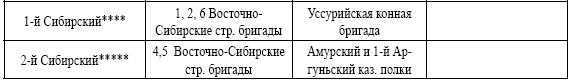 ** В состав корпуса включены Оренбургская казачья батарея, Туркестанская конно-горная батарея, Туркестанский саперный батальон.