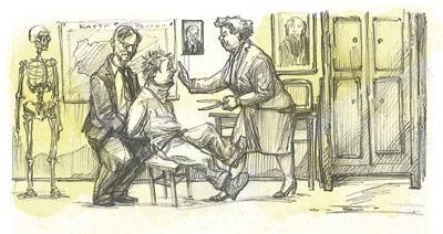 В одной из комнат, тускло освещенные падающим из окон светом, стоят два дубовых гроба с останками генералов Нечаева и Молчанова. Тут же забытый на подоконнике странный, коричневатый, скомканный предмет, по форме напоминающий перчатку, - кожа, целиком содранная с чьей-то руки.