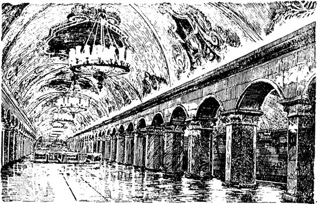 Станции Московского метрополитена представляют собой чрезвычайно интересные сооружения. Они интересны и архитектурно — красотой своих форм и отделкой — и технически — новизной своих конструкций. С точки зрения архитектуры — это в подлинном смысле слова «подземные дворцы». Но в этих «подземных дворцах» исчезает впечатление и представление о подземелье, о большой глубине, об окружающих сооружение плывучих грунтах и водах. Они просторны, ярко освещены, облицованы прекрасным мрамором и цветными плитками. Заметим, что на облицовку только десяти станций первоочередной линии Сокольники — Парк культуры и отдыха было употреблено пятьдесят тысяч квадратных метров