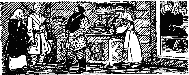 В тот день там праздник был. Съехалось гостей со всех волостей: и купцы, и попы, и богатые мужики в горнице сидят, пируют.