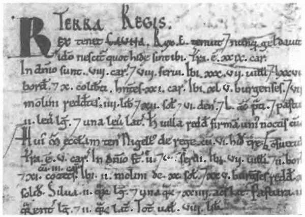 8. Отрывок из «Беовульфа». Британский музей, коллекция Коттона. Рукопись была повреждена во время пожара в 1731 г. Со временем обуглившиеся края отвалились, но, прежде чем это случилось, были сделаны копии, по которым мы можем восстановить недостающие слова.