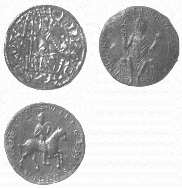 11. Эдуард Исповедник: фальшивая печать. Из Британского музея. Матрица, с которой были сделаны лицевая и обратная стороны, была искусно изготовлена в Вестминстерском аббатстве в середине XII в. Печати этого мастера прикладывались к поддельным хартиям ряда религиозных орденов. Эта печать представляет собой близкую копию настоящей печати Исповедника, самую древнюю известную копию большой печати; подлинные образцы сохранились недостаточно хорошо, чтобы их можно было воспроизвести.