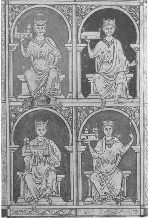 25. Четыре нормандских короля, рис. Матвея Парижского, ок. 1250 г. Из Британского музея.