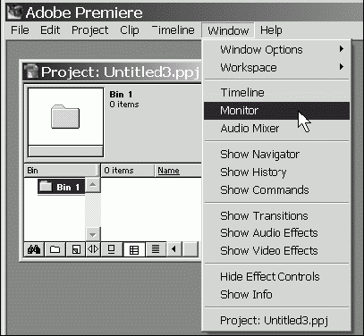 Если вы не видите при повторном запуске Adobe Premiere каких-либо из перечисленных окон, то, вероятно, вы их закрыли при прошлых сеансах работы. Для того чтобы вызвать их вновь на экран, воспользуйтесь одним из пунктов меню Window (Окно). Возможно, вам будет интересно посмотреть в этом выпадающем меню (рис. 1.3), какие окна, кроме упомянутых, имеются в Premiere.