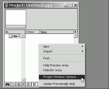 ♦ Верхнее меню (menu bar) – строка меню, находящаяся под заголовком окна Adobe Premiere (см. рис. 1.2 и 1.3).