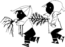 А деревце оказалось у них в руках. Оно было с корешками. Вот как хорошо они его выдернули.