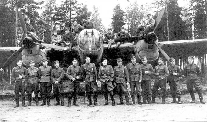 Летный состав 3/Р LeLv 6 перед СБ 2М-103. Аэродром Нуммела, 2.10.1944.