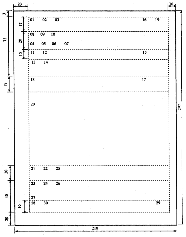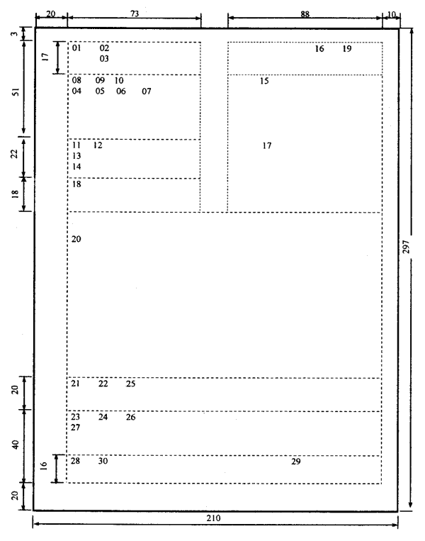 Схема 1. Расположение реквизитов и границы зон на формате А4 углового бланка (размеры указаны в мм).