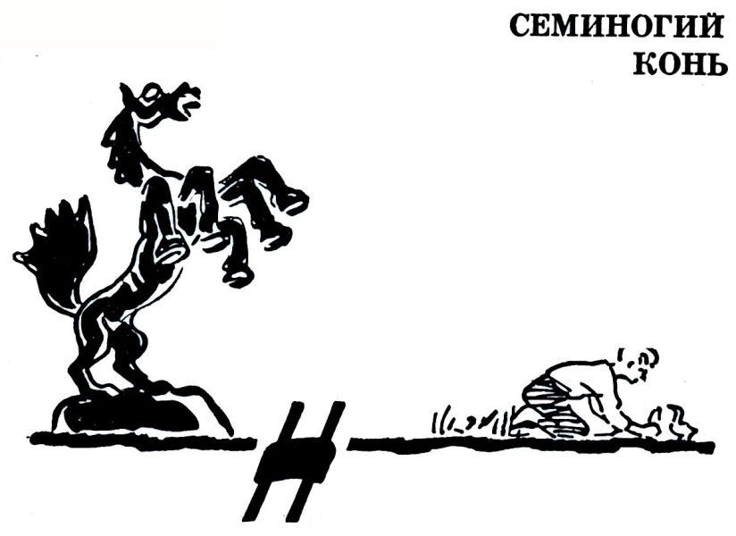 Сразу и не сообразишь. Как будто взбешенный вороной конь. Присел на задние ноги, хвост раскинут широким веером, бедра рябит дрожь. Вздыбленный скакун готовится растоптать все, что встретится на пути. В приподнятых копытах таится слепая, грубая сила, которая вот-вот раздробит тебе голову. Но не две, а пять передних ног у коня-призрака. Над широкой грудью змеей взметнулась тонкая шея; на ней маленькая головка с единственным выпученным глазом.
