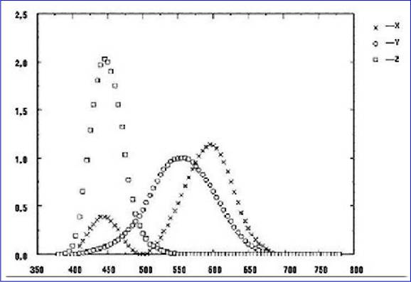 Ещё в 1931 году CIE (Commission Internationale de l'Eclairage) были замерены реакции глаза на свет различной длины волны, и оказалось, что кривые отзыва очень далеки от логически удобоваримых.