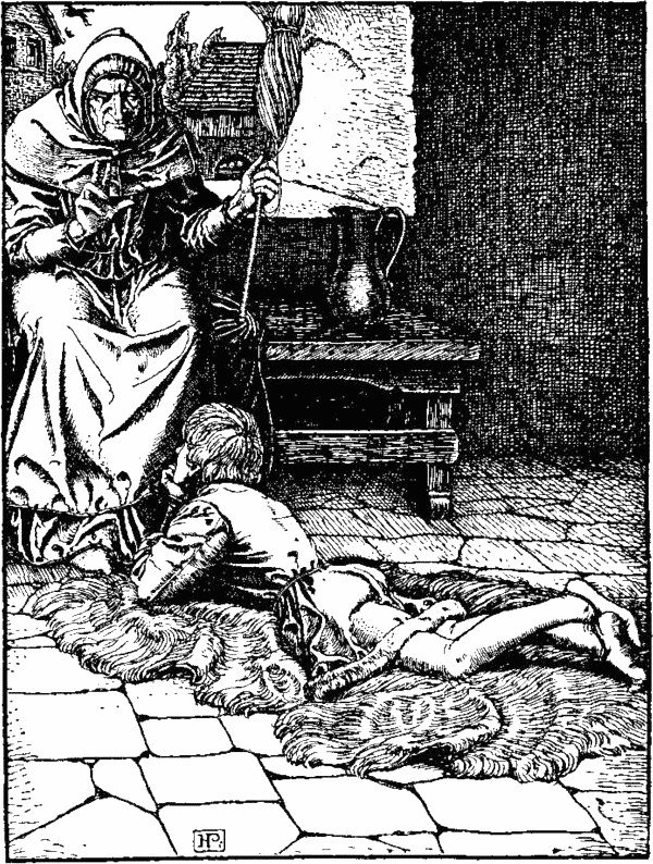Яркий свет падал через окно на Урселу. Она сидела, тепло закутавшись, с прялкой в руке, а Отто лежал у ее ног на медвежьей шкуре и молча размышлял о старом придании, только что рассказанном Урселой. В нем говорилось о победе отважного рыцаря над страшным огнедышащим змеем. Победив его, основатель рода Вульфов украсил свой герб изображением дракона и взял себе имя Отважного Змея. С тех пор дом его называется Замком Отважного Змея.
