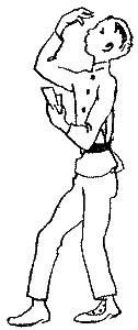 «В тот день (дёрг!), когда доблестный Игорь (дёрг!), ведущий войска из лесов и болот (дёрг!), увидел (дёрг!), что в поле (дёрг!), где стояли враги (дёрг!), поднялось зловещее облако пыли (дёрг!), он сказал (дёрг! дёрг! дёрг! дёрг!): „Как сладко умереть за отчизну!“ (дёрг! дёрг!)