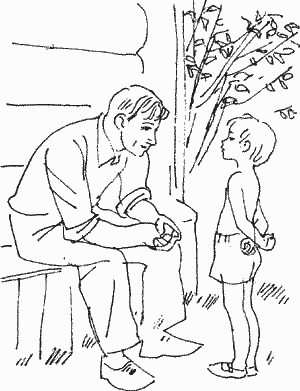 Васька и Женька подошли и стали перед Сережей. И Лида подошла с маленьким Виктором на руках. Они стояли и смотрели на Сережу. А он болтал ногой и не говорил ничего. Женька спросил: