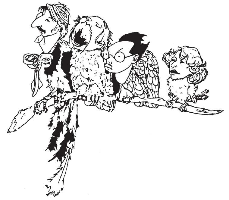 Карикатура А. Д. Топикова (Е. И. Праведникова) на членов общества “Краса” из петроградского журнала “Рудин” (1915. № 1)