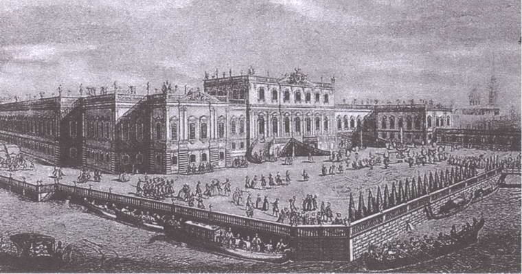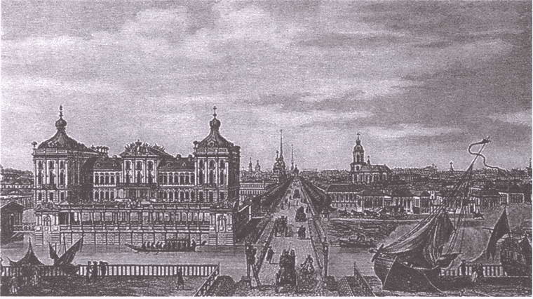 Аничков дворец. Гравюра по рисунку Махаева. Британский музей
