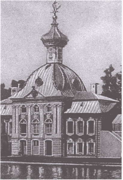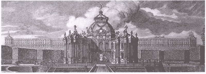 Летний дворец Елизаветы Петровны. Северный фронтон. Гравюра по рисунку Махаева. Британский музей