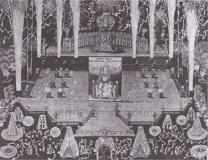 Фейерверк в Санкт-Петербурге. 1740 год. Гравюра. Британский музей