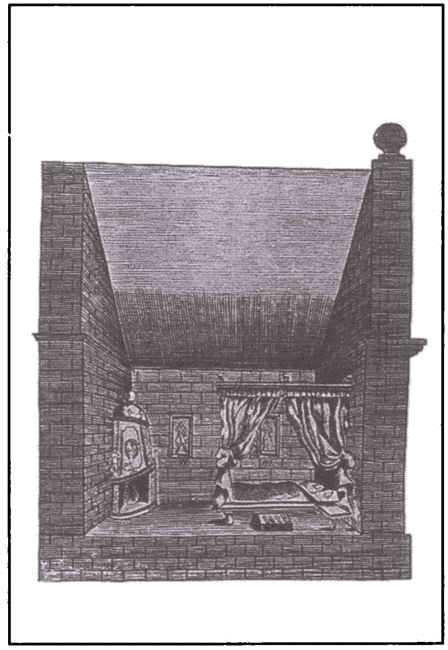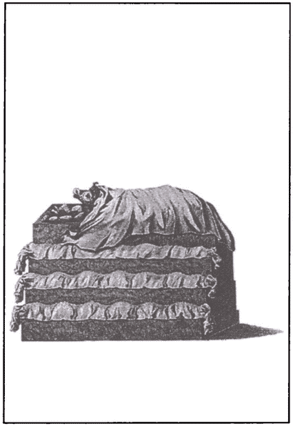 Ледяной дворец, построенный на Неве в январе 1740 года. Гостиная и комната для новобрачных. Гравюра 1741 года. Британский музей