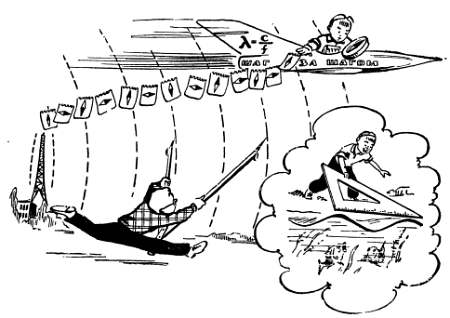 Рис. 29. Электромагнитные волны наводят в приемной антенне переменный ток и, таким образом, переносят от передатчика к приемнику определенную энергию.