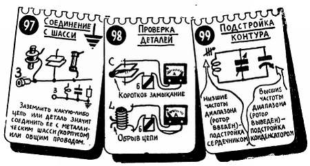 Настраивая входной контур детекторного приемника, следует помнить общее для настройки всех контуров правило: при выведенном роторе резонансную частоту контура подгоняют с помощью подстроенного конденсатора, а при введенном роторе — путем изменения индуктивности катушки (рис. 57, 58, лист 99).