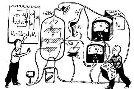 Рис. 76. В сетевой радиоаппаратуре на накал подается переменное напряжение, пониженное с помощью трансформатора до необходимой величины (например, 6,3 в). Питание анодно-экранных цепей тоже осуществляется от сети, но через выпрямитель, преобразующий переменное напряжение в постоянное.