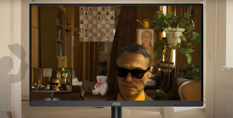 На мониторе появилось изображение какой-то комнаты и человека в черных очках.
