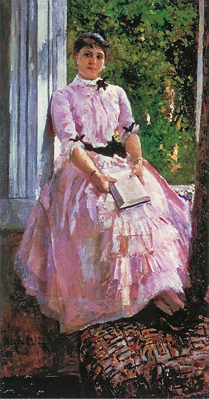 В этом раннем портрете Коровин уже подбирается к импрессионистической манере подвижного мазка, но еще сохраняет материальную плотность формы.