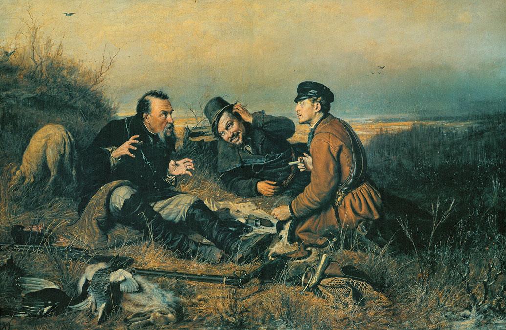 Василий Перов был знатоком природы, очень любил охоту. Для него настоящим был человек, «живущий в природе». После многочисленных изображений горестных сцен из жизни «униженных и оскорбленных» эта картина выглядит попыткой художника улыбнуться, увидеть радостную сторону жизни.