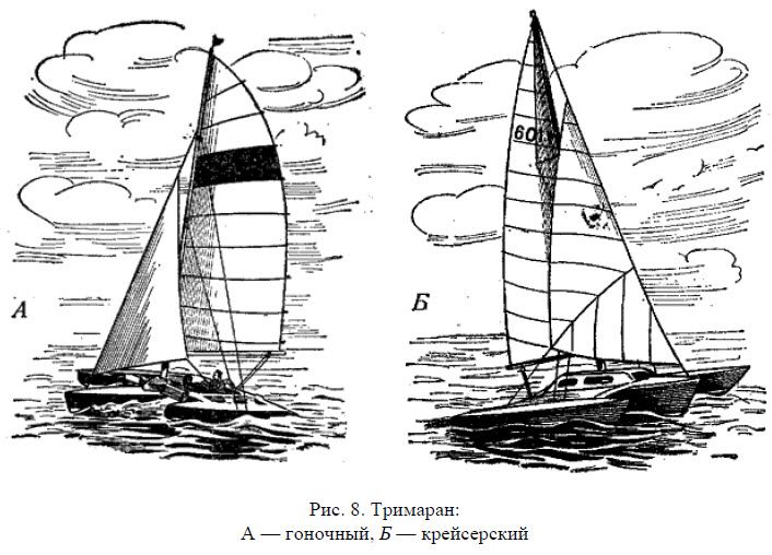 Тримараны (рис. 8) имеют три корпуса: средний (более