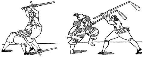 Для истории всех старинных школ владения оружием характерна одна общая черта: они возникли в средних классах общества. В то время как дворянин упражнялся у барьера на рыцарском турнире, горожане и мастеровые – всегда носившие при себе оружие, хоть и не столь благородное, как рыцарские меч и копье, – учились применять его у циркачей, исполнявших танцы с мечами, борцов или каких-нибудь старых ветеранов, сведущих во всех тонкостях искусства.